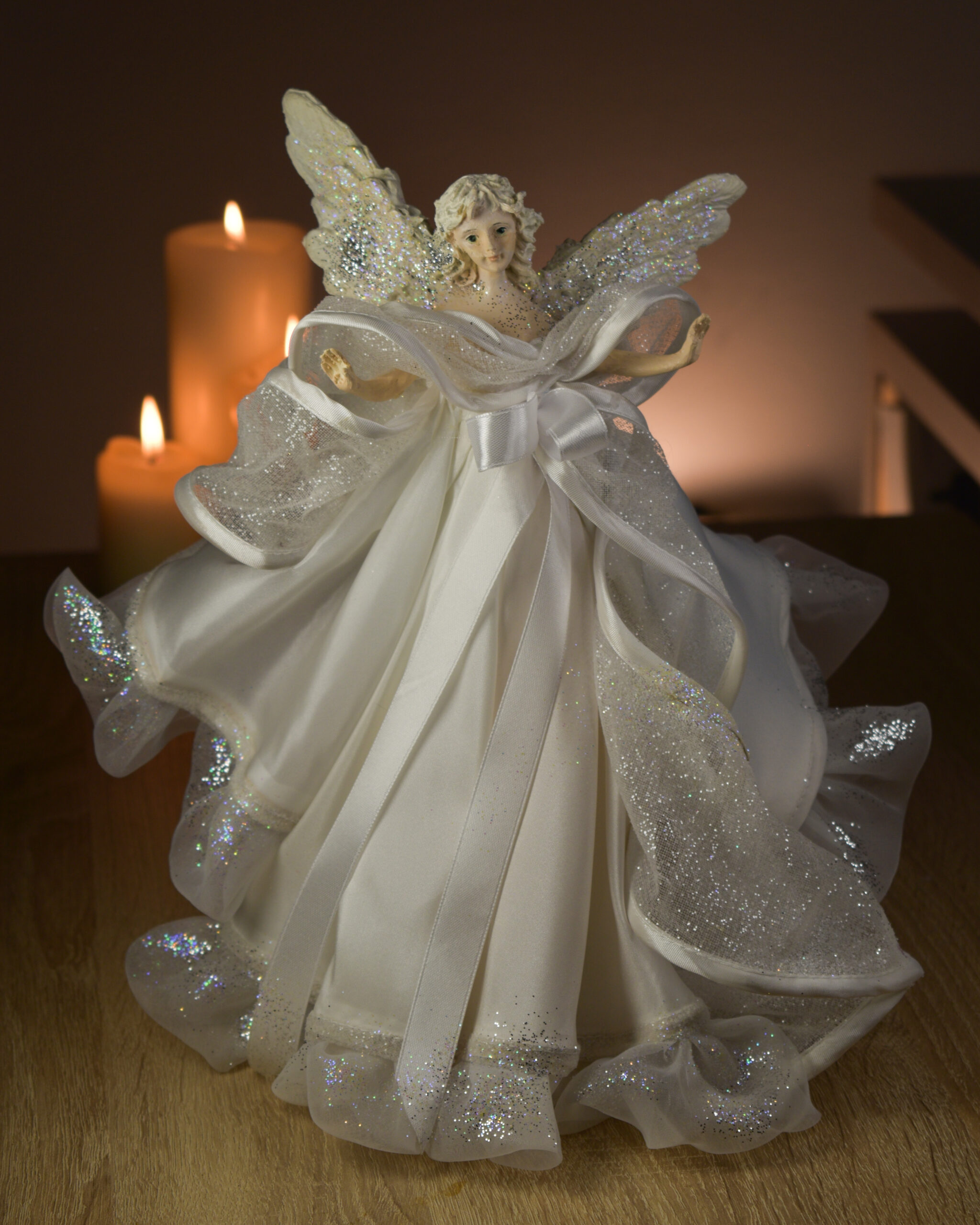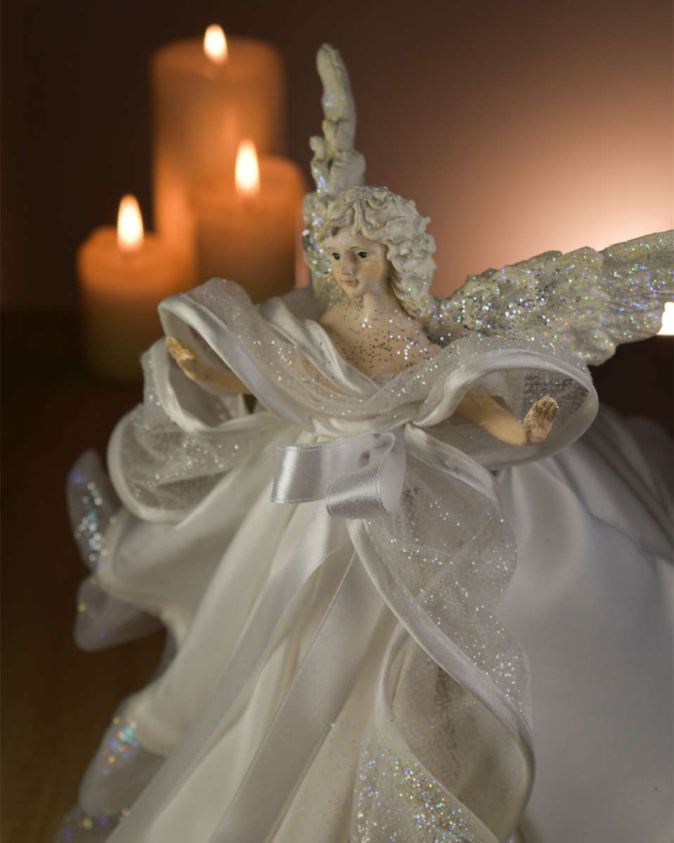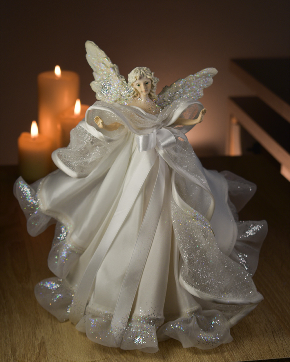 Unikatni ručno izrađeni božićni anđeo u bijeloj kombinaciji – idealan kao ukras za vrh bora ili samostalna dekoracija za vaš božićni interijer.
