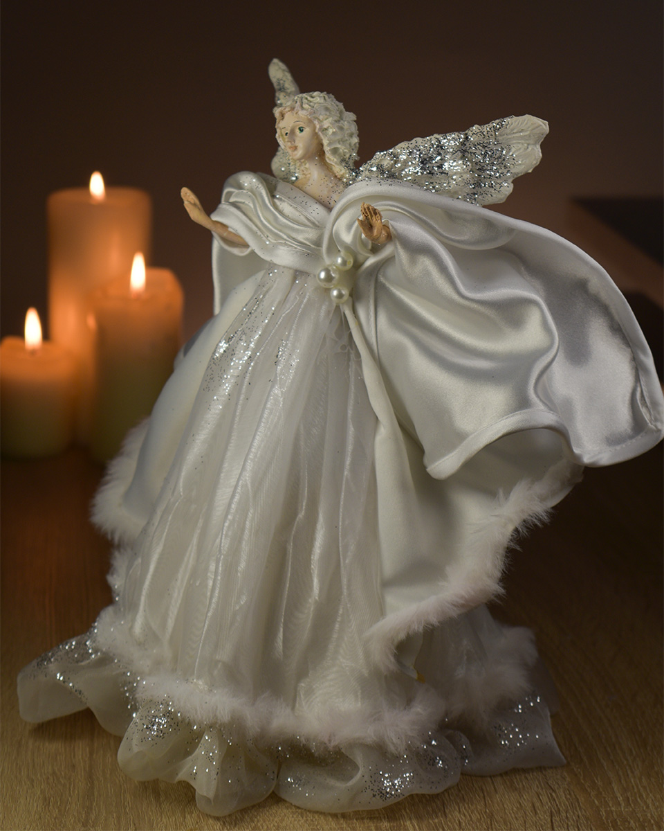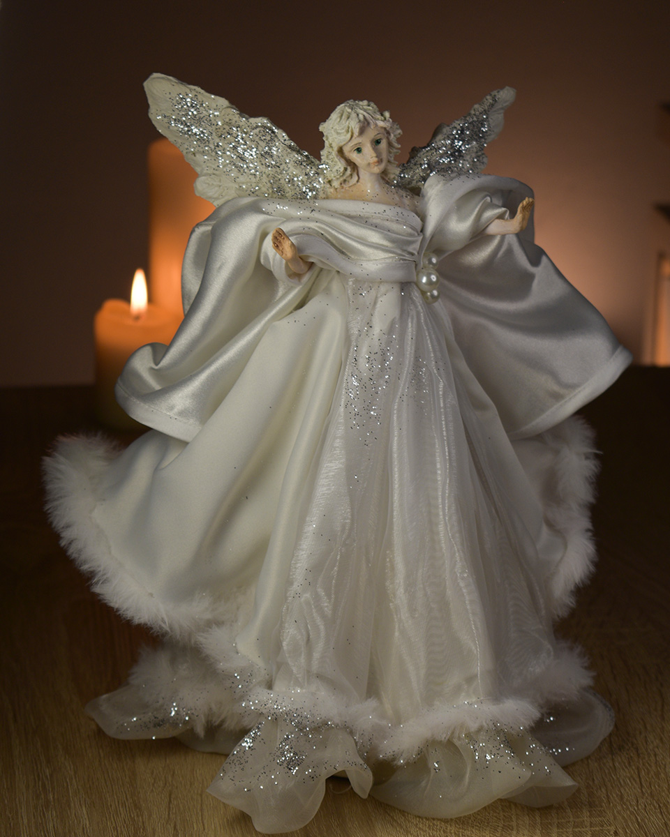 Unikatni ručno izrađeni božićni anđeo u bijeloj kombinaciji – idealan kao ukras za vrh bora ili samostalna dekoracija za vaš božićni interijer.