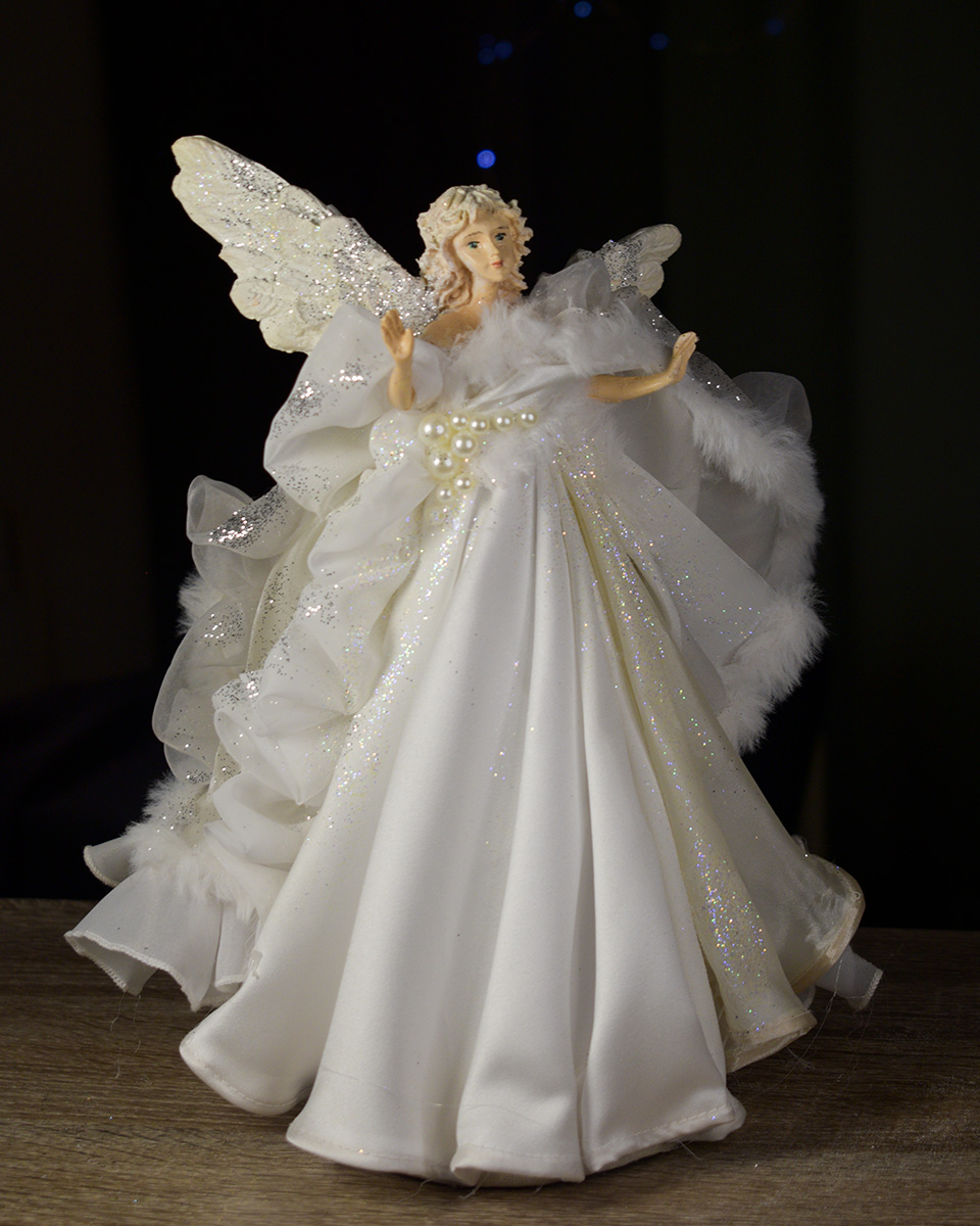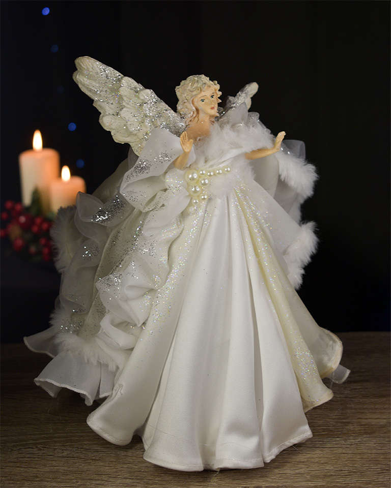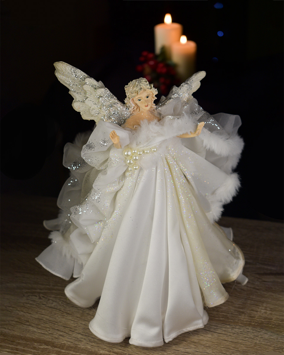 Unikatni ručno izrađeni božićni anđeo u bijeloj kombinaciji – idealan kao ukras za vrh bora ili samostalna dekoracija za vaš božićni interijer.
