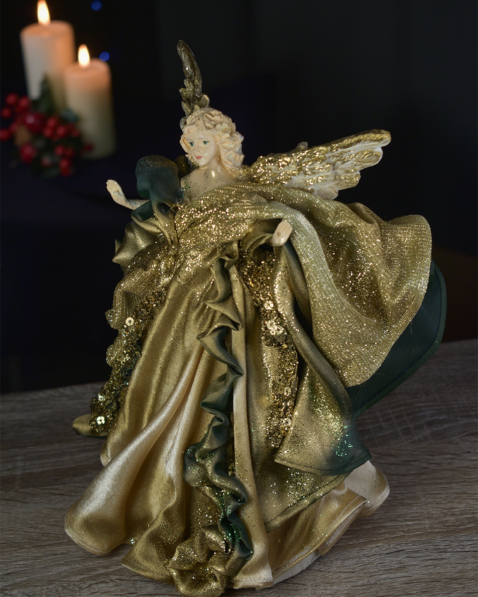 Unikatni ručno izrađeni božićni anđeo – idealan kao ukras za vrh bora ili samostalna dekoracija za vaš božićni interijer.