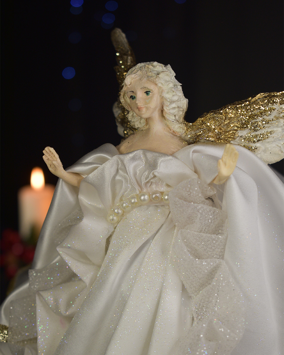 Unikatni ručno izrađeni božićni anđeo – idealan kao ukras za vrh bora ili samostalna dekoracija za vaš božićni interijer.